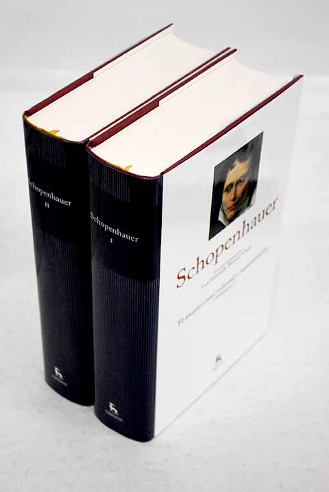 Barcelona. 23 cm. 2 v. (CXLVII, 596 ; 700 p.). Encuadernación en tapa dura de editorial. Colección 'Arthur Schopenhauer', numero coleccion(1-2). Schopenhauer, Arthur 1788-1860. Estudio introductorio...