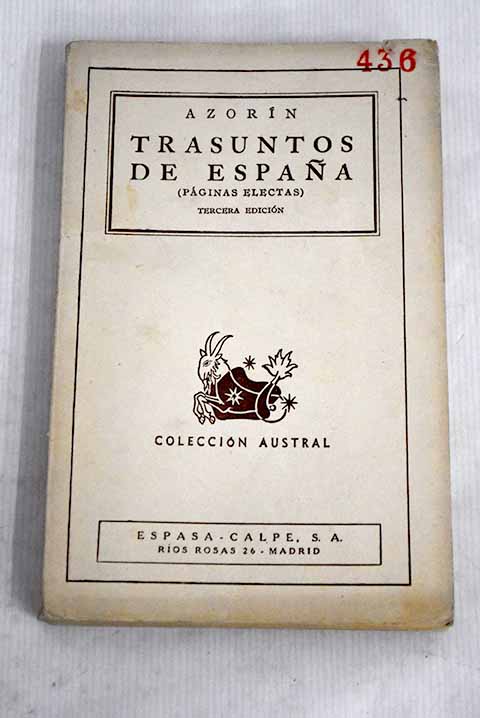 Madrid. 18 cm. 163 p., 2 h. Encuadernación en tapa blanda de editorial. Colección 'Colección Austral', numero coleccion(47). Azorín 1873-1967. Trasuntos de España. Azorin seud. Cía. Gral. Fabril Fina...