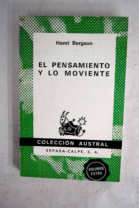 Madrid. 18 cm. 232 p. Encuadernación en tapa blanda de editorial. Colección 'Colección austral', numero coleccion(nº 1615). Bergson, Henri 1859-1941. La pensée et le mouvant. Traducción del francés p...