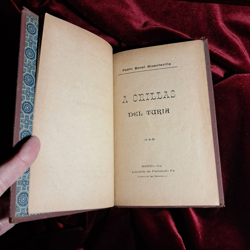 A ORILLAS DEL TURIA. Pedro Bonet Alcantarilla. Librería Fernando Fe 1894. Cartoné en media piel con dorados en lomo. 93 pp. 11,5 cm. En perfecto estado. Firma de anterior propietario en página de cortesía. Muy buen ejemplar.