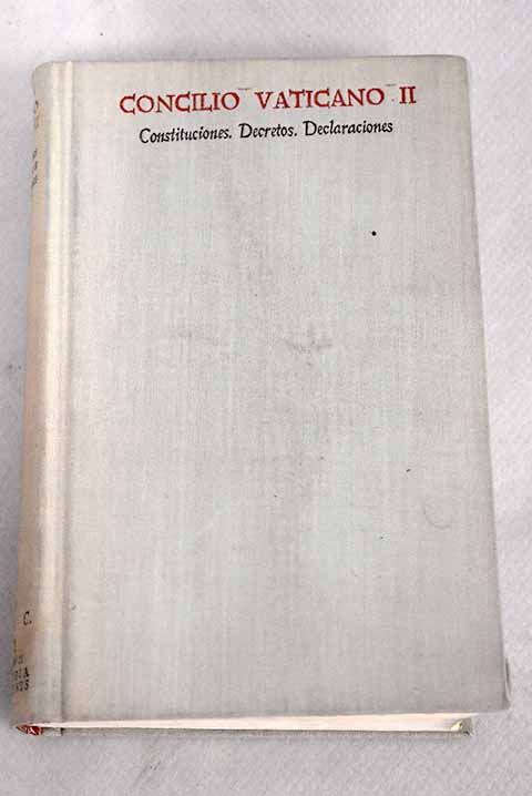 Madrid. 20 cm. X p.- 1 h. 876 p. Encuadernación en tapa dura de editorial con corte superior naranja. Colección 'Biblioteca de Autores Cristianos', numero coleccion(v. 252. Sección II Teología y Cánones). Concilio Vaticano. 1962-1965. Prólogo del. Dr. Casimiro Morcillo González, arzobispo de Madrid-Alcalá. Morcillo, Casimiro. 1904-1971 . Cubierta deslucida. Contiene párrafos subrayados a bolígrafo. Contiene párrafos subrayados con rotulador fosforito. (=2906703=) Depósito legal: M 18848-1965 Gobierno de la Iglesia. Organización eclesiástica. Vat. II (262.5 Vat. II) Derecho canónico. Derecho eclesiástico.(348.13)