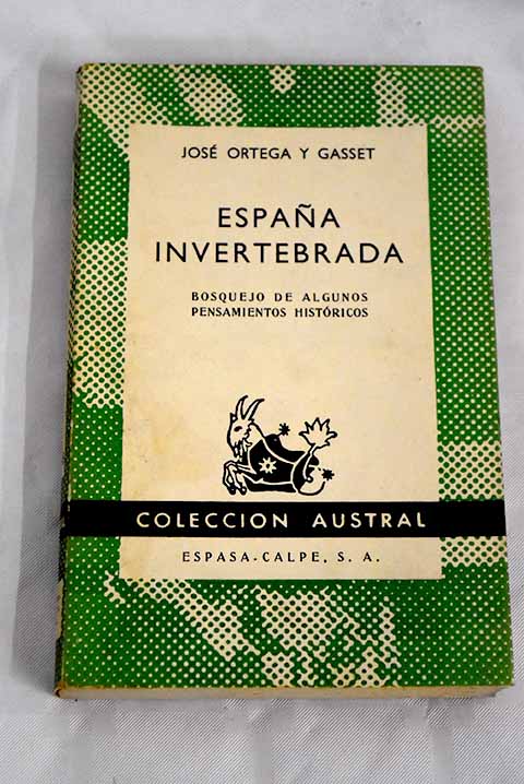 Madrid. 18 cm. 159 p. Encuadernación en tapa blanda de editorial con sobrecubierta. Ortega y Gasset, José 1883-1955. España invertebrada. Colección austral. volumen coleccion( 1345). Filosofía . (=3237653=) Filosofía de la mente y del espíritu. Ciencias ocultas (130.2(460))