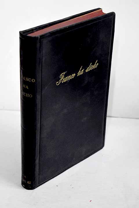 Madrid. 22 cm. 350 p. Encuadernación en tapa dura artesanal en plena piel. Franco Bahamonde, Francisco 1892-1975. Recopilación dirigida por especialistas de derecho político. Índice. 1936-1939. Política y gobierno. 1939-1955. Discursos políticos. España. Jefe de Estado (1936-1975: Franco) . Cubierta deslucida. (=3566562=) Política (32(460)?1936/55?)