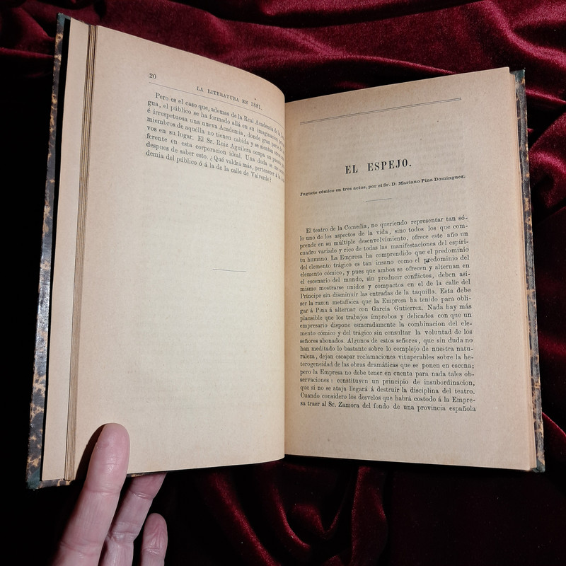 LA LITERATURA EN 1881. Leopoldo Alas Clarin. Armando Palacio Valdés. Alfredo de Carlos Hierro 1882. Religadura en media piel con dorados en tejuelo y lomo. 13 cm. 203 pp. No conserva cubiertas originales. Paginado limpio y en perfecto estado. Muy buen ejemplar.